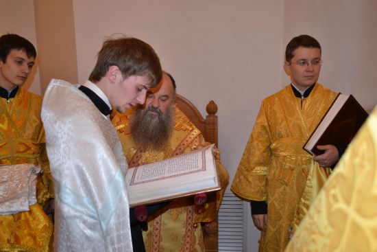 28 ноября митрополит Саранский и Мордовский Варсонофий, управляющий делами Московской Патриархии, совершил Воскресное Всенощное бдение в Свято-Феодоровском Кафедральном Соборе г. Саранска в сослужении соборного духовенства и игумена Митрофана (Шкурина), наместника Свято-Успенского епархиального мужского монастыря Липецкой епархии, секретаря редакционного Совета журнала: «Вестник церковной истории». Во время вечернего Богослужения сначала были пострижены в чтецов, а потом и рукоположены в иподьяконов 2 студента Саранского Духовного училища: Сергей Геннадьевич Позоров, учащийся III курса и Павел Валентинович Семенов, выпускник 2003 года.