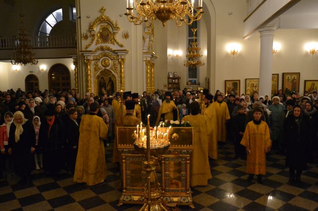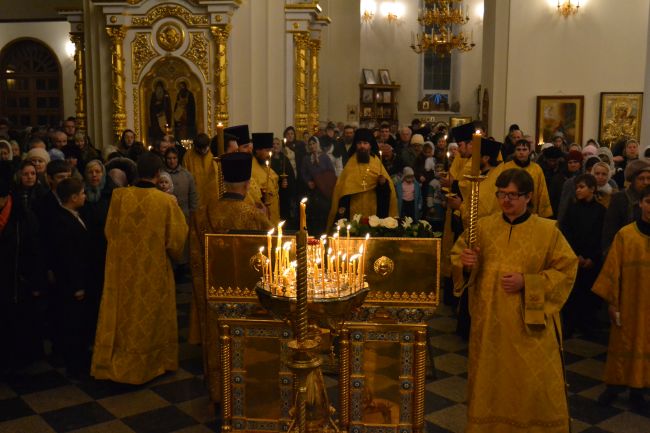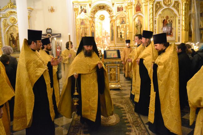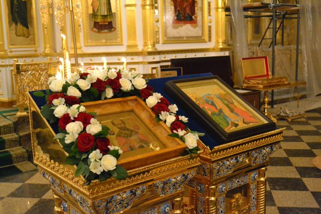 В этот святой день в кафедральном соборе святого праведного воина Феодора Ушакова состоялось торжественное праздничное Всенощное Бдение и Божественная Литургия, которые возглавил по благословению Его Высокопреосвященства, Высокопреосвященнейшего Варсонофия, митрополита Саранского и Мордовского, Управляющего делами Московской Патриархии ключарь собора - игумен Фома Василенко в сослужении духовенства собора. На Всенощном Бдении более четыреста человек смогли помазаться освященным елеом, а на Божественной Литургии смогло причаститься около 200 человек.
