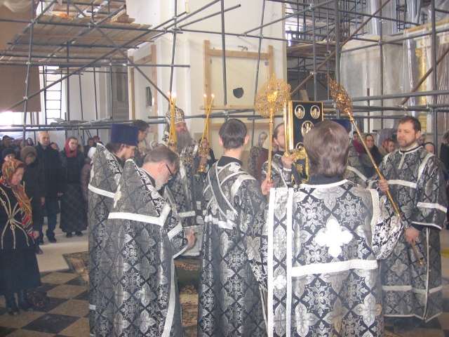 11 марта в пятницу первой недели Великого поста Высокопреосвященный Варсонофий, митрополит Саранский и Мордовский, совершил Божественную литургию Преждеосвященных даров в Свято-Феодоровском кафедральном соборе в сослужении соборного духовенства.