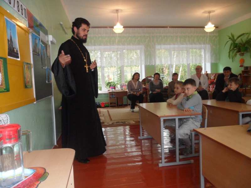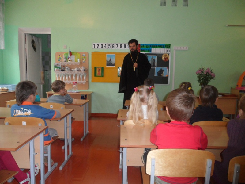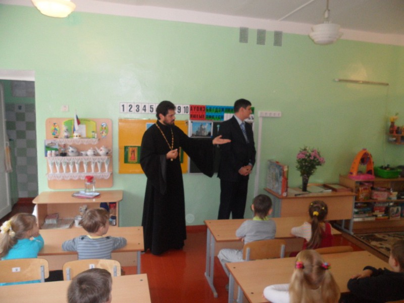 Приятным сюрпризом оказалось внимание ребят к гостям, так как специально к этому дню малыши подготовили стихотворения о Боге, Его Церкви, Вере и рассказали их со всей душой и неподдельной радостью. В продолжение встречи отец Виктор рассказал о важности и необходимости молитвенного обращения к Богу с просьбами и благодарением, а также напомнил, как и для чего нужно брать благословение у священника, какое значение оно имеет в жизни человека. Из рассказов самих детей отец Виктор напомнил о необходимости добрых дел и уважительного отношения друг к другу.