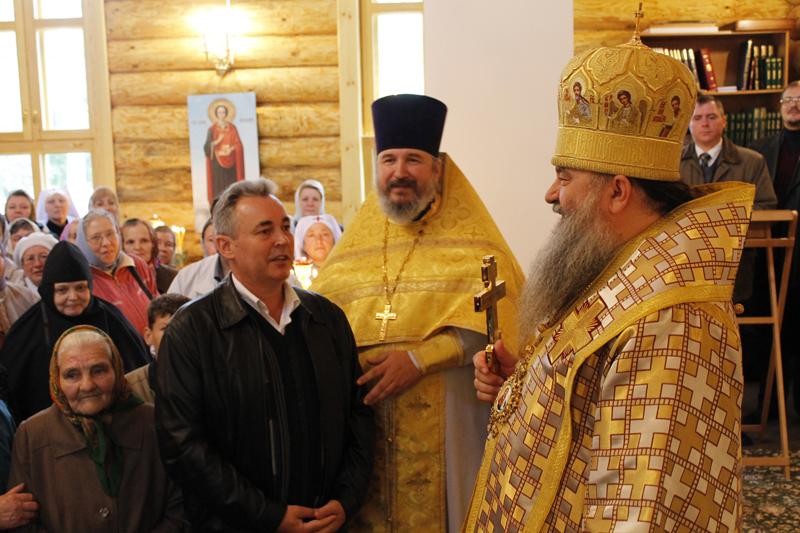 По окончании богослужения митрополит Варсонофий обратился к прихожанам с архипастырским словом, а в память об освящении храма подарил храму икону Казанской Божией Матери.