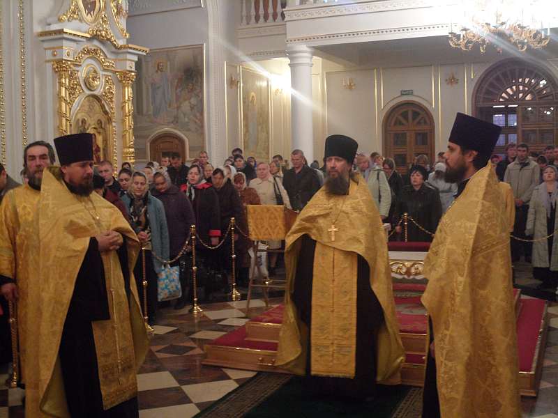 Во время недельного пребывания в нашем соборе великой Курганской святыни - иконы Святителя Мирликийского и Чудотворца Николая, по окончании утреннего и вечернего богослужения, а также по просьбе молящихся, ежедневно совершались молебные пения перед чудовторным образом.