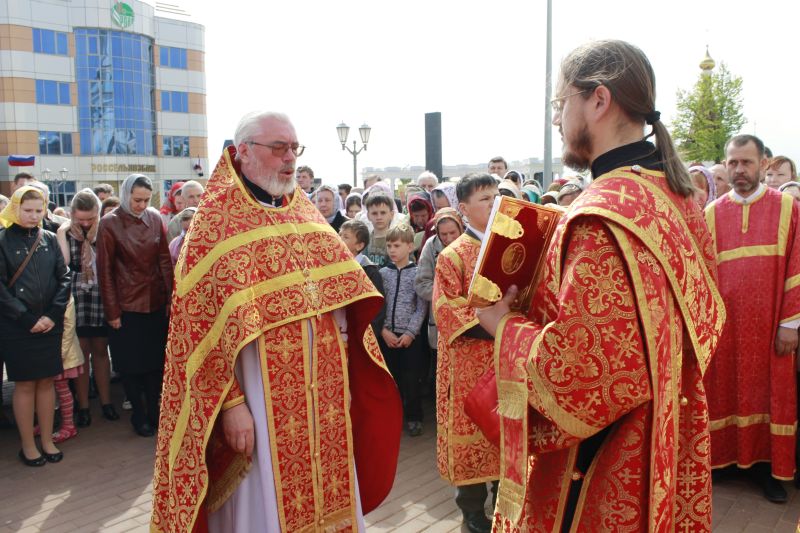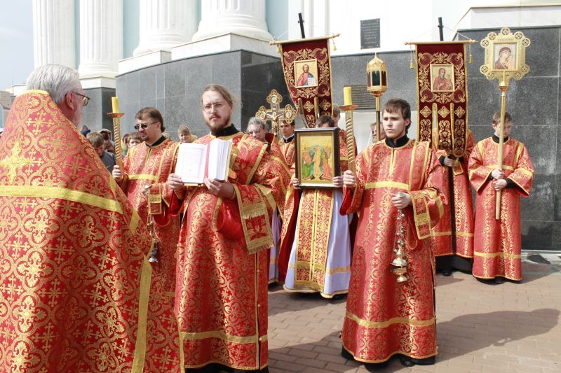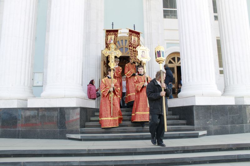 По окончании литургии по соборной традиции был совершен пасхальный крестный ход с чтением Евангелия и окроплением верующих святой водой.