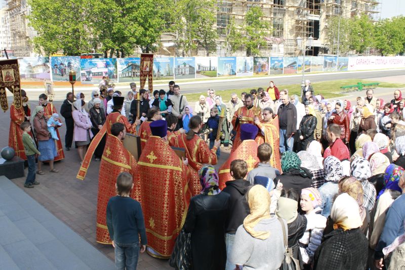 5-6 мая в Неделю 4-ю по Пасхе, о расслабленном, когда Русская Православная Церковь совершает память вмч. Георгия Победоносца (303) в Свято-Феодоровском кафедральном соборе г. Саранска праздничное Всенощное бдение и Божественную Литургию совершил клирик кафедрального собора протоиерей Виктор Сардаев в сослужении соборного духовенства.