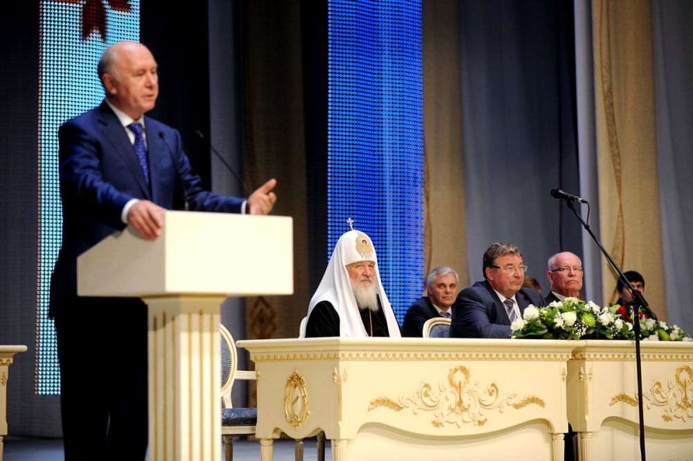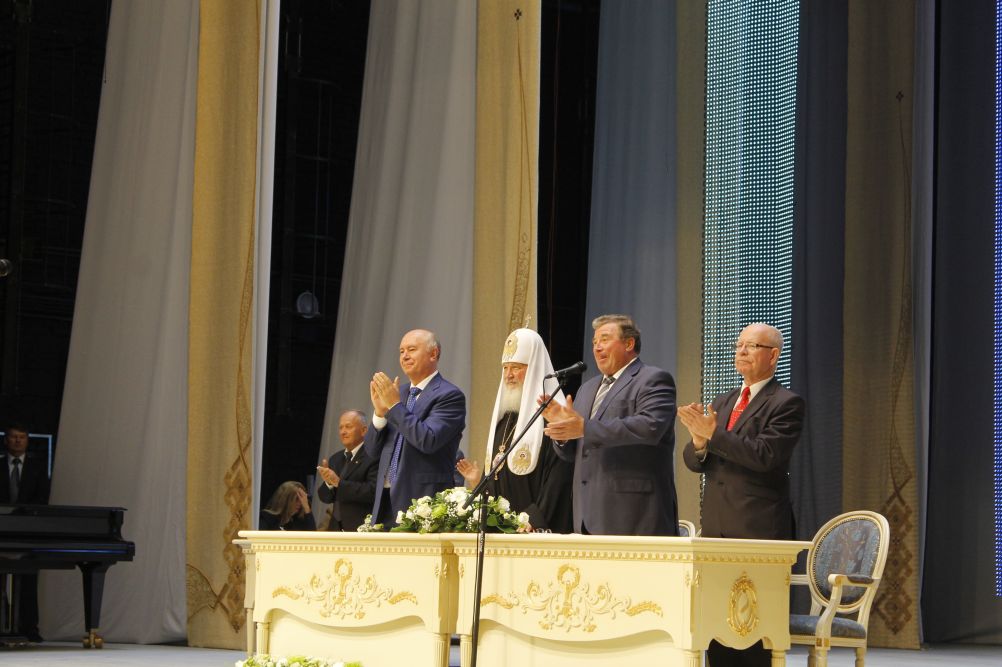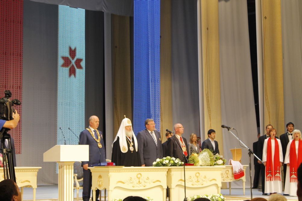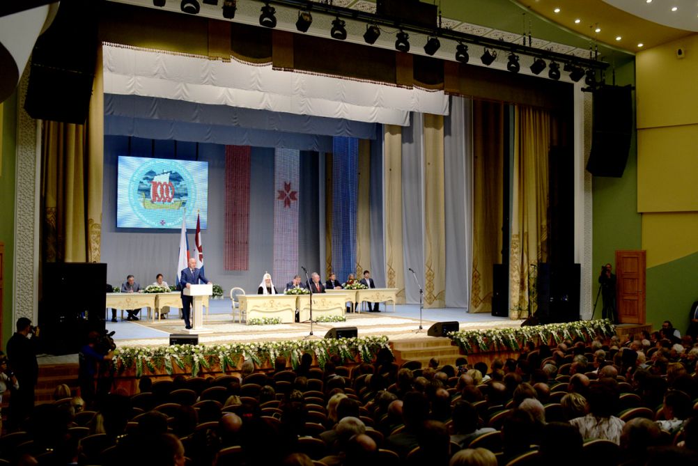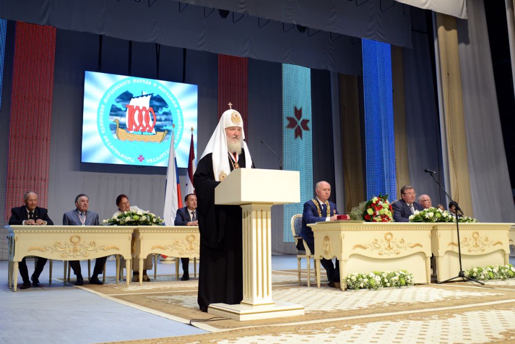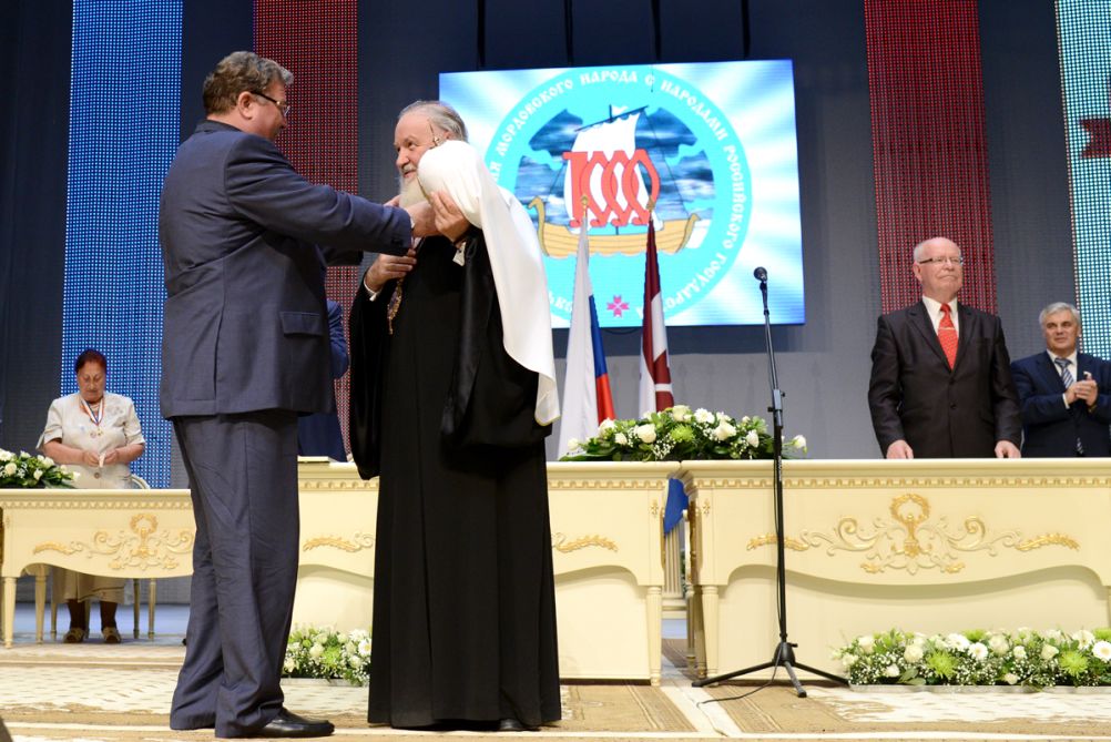 Затем Святейший Владыка принял участие в торжественном акте, посвященном 1000-летию единения мордовского народа с народами Российского государства, который прошел в Республиканском доме культуры г. Саранска.