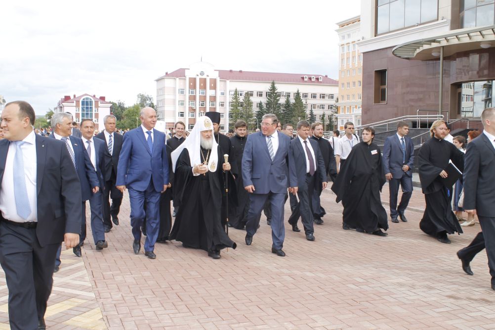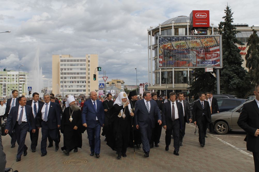 25 августа 2012 года, по окончании чина освящения закладного камня в основание храма святых равноапостольных Кирилла и Мефодия в Саранске, Святейший Патриарх Московский и всея Руси Кирилл в сопровождении управляющего делами Московской Патриархии митрополита Саранского и Мордовского Варсонофия, главы Республики Мордовия В.Д. Волкова и губернатора Самарской области Н.И. Меркушкина совершил прогулку по центральной части города.