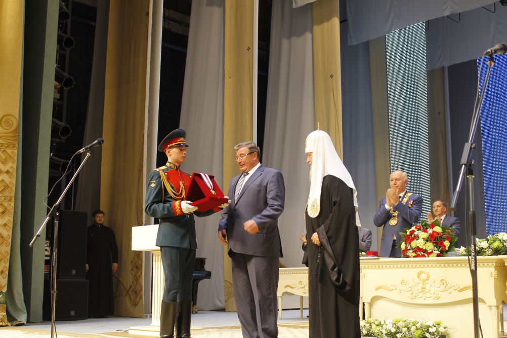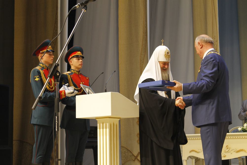 Святейший Патриарх Кирилл вручил Н.И. Меркушкину орден «Славы и чести» I степени, В.Д. Волкову — орден святого благоверного князя Даниила Московского I степени и митрополиту Варсонофию — орден преподобного Сергия Радонежского I степени.