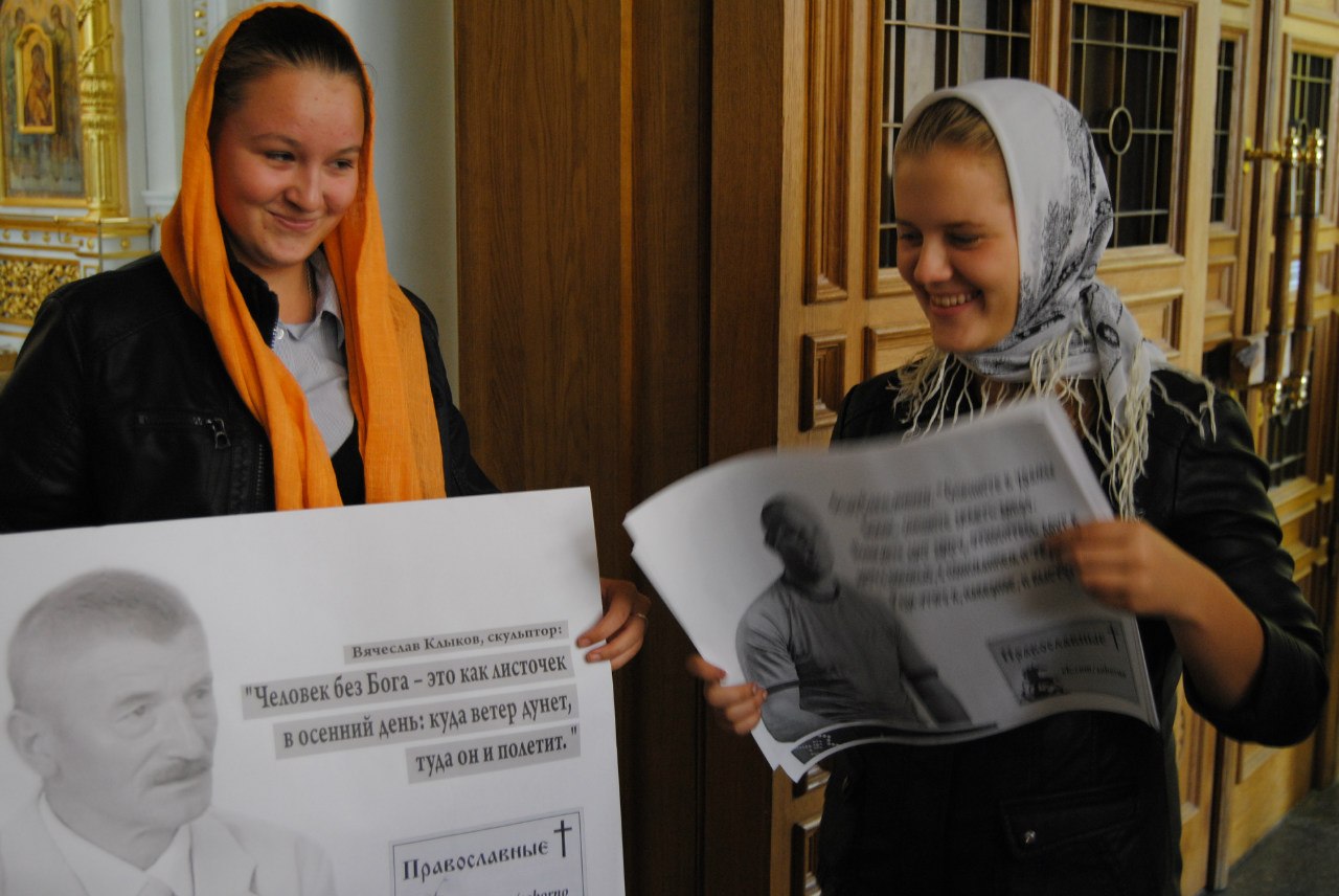 Молодежный клуб кафедрального собора святого праведного воина Феодора Ушакова в воскресный день 16 сентября принял участие в миссионерской просветительской акции «Мы – Православные!» по расклейке плакатов с высказываниями известных людей: музыкантов, спортсменов, актеров, телеведущих.