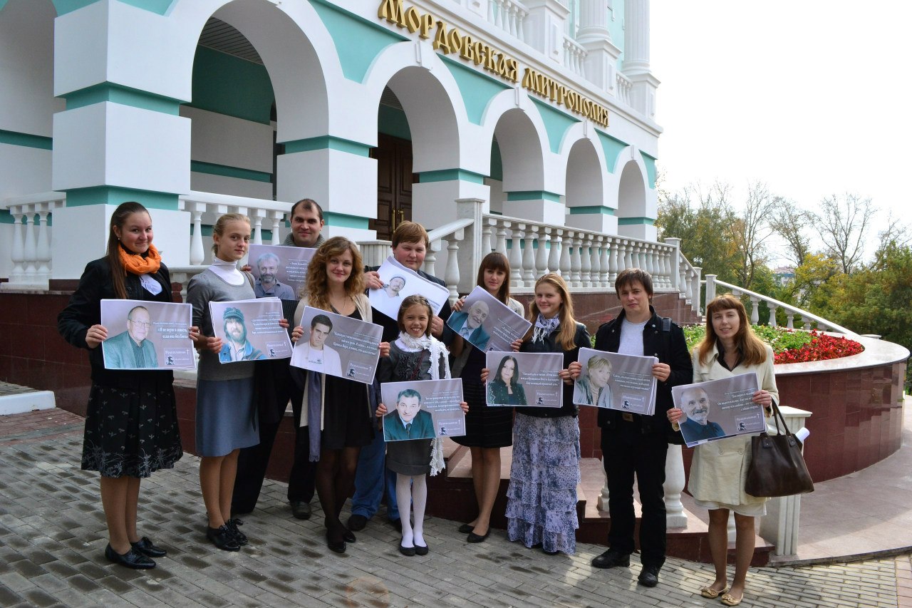«Иногда хочется чувствовать себя не одиноким в своей вере», - говорит Ольга Савлова Председатель Союза православной молодежи Мордовии, - «Хочется узнать, что кто-то думает так же, как и ты, считает это важным. Такое легко почувствовать на богослужении. Но еще много людей, которые не пришли в Церковь. И эта акция специально для них». Акция стартовала в здании Мордовской митрополии. Как раз недавно там был отстроен новый кабинет Отдела молодежного служения. После прохождения инструктажа и экскурсии по новому зданию митрополии, которую провел Евгений Кимяев, молодежь поднялась в храм Спаса Нерукотворного, где была совершена молитва на начало всякого дела. Затем молодые люди отправились расклеивать плакаты по остановкам центральной части Саранска. «Дюжев приезжает?», - спросила женщина, вчитываясь в плакат. «Нет, это акция», - ответила активистка Мария и направилась дальше, оставляя женщину обдумывать слова известного актера: «Однажды у меня возникла необходимость зайти в храм. Я зашел…и остался. Пришла вера, я понял, что здесь истина».