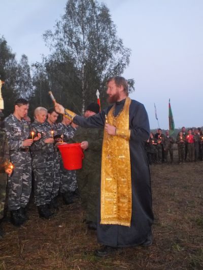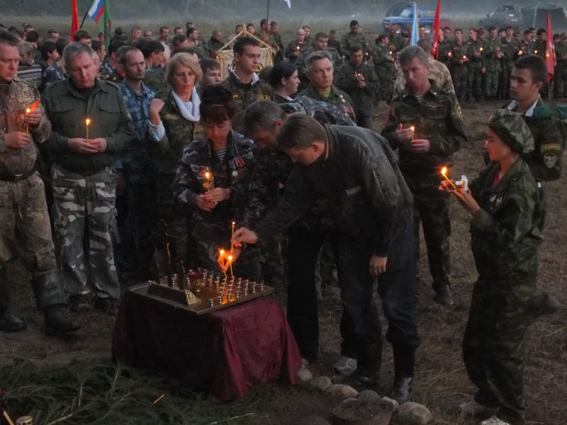 Наше короткое пребывание под Смоленском началось торжественным открытием «Вахты памяти», где выступили начальство области, организаторы, ветераны ВОВ, командиры отрядов. Мне предоставили возможность провести панихиду обо всех погибших воинах и окропить всех участников Святой водой.