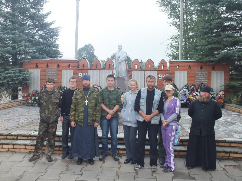 Обо всех днях сразу. Саранов Денис. В августе мне посчастливилось участвовать в вахте памяти в составе группы бойцов поискового отряда «Адмирал». Руководителем нашего отряда был Олег Владимирович Комаров. Наша группа 14.08.12 г. в 8.00 собралась у здания музея «Боевой славы». После молебна в Кафедральном Соборе Федора Ушакова мы поехали в Смоленскую область. До назначенного места мы добирались 18,5 часов, 15 августа в 5 утра мы остановились около штаба. Выгрузили свои вещи, палатки и легли отдыхать. Подъём на линейку в 8.00. После линейки мы нашли удачное место для стоянки вблизи воронки, оставшейся после взрыва военных лет и заполненной водой. Вырубив поросль деревьев и кустарников и скосивши траву, мы установили палатки, после того как проверили местность. В первый день мы варили на костре суп, а, если быть точнее, то в первый день пищу нам приготовил наш руководитель. Изучив правила поведения, мы сдали зачет и стали участвовать в раскопках. Шли дожди, была сырая погода, и мы научились разжигать костер во влажных условиях. Вечером была линейка, посвященная открытию "Вахты памяти". Священники, которые были с нами, служили молебен об усопших. В следующие дни мы работали на раскопках, обеспечивали жизнедеятельность нашего отряда. Я научился колоть дрова, варить суп, разводить костер, ставить палатку, переносить погодные трудности. Считаю, что эта поездка очень многому меня научила. Я очень рад, что узнал таких замечательных людей. Мы испытали смешанное чувство, когда наши бойцы Павел, Андрей и руководитель Олег Владимирович подняли останки солдата. Это было чувство радости и одновременно грусти. Ведь этот солдат мог быть ровесником. Его жизнь оборвалась внезапно. Он погиб героически. А радостно было от того, что ещё один солдат был найден. Еще мне запомнилось день, когда мы всем отрядом ездили в поселок Тёмкино в храм на службу в день Преображения 19 августа. Я думаю, что очень символично, что наша поездка состоялась именно во время этого праздника.