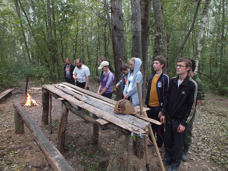 20 августа 2012. Татьяна Зобнина. Подъём в 5.45 утра, т.к. мы с Олей дежурные. Ночью шёл дождь, дрова намокли, костёр долго не разжигался. Завтрак мы всё-таки приготовили. Затем всей группой отправились на занятия к отряду из Иваново. Там было очень интересно. Нам рассказывали про различные боеприпасы, показали некоторые из них. После занятий мы отправились на раскопки. Ольга осталась в лагере, а я пошла в лес в так сказать мужской компании. Туда-сюда ходили по лесу, искали, копали. Отчаянно пробирались сквозь заросли жгучей крапивы, пробрались всё-таки. Особо ничего не нашли, так, металлолома немного. Обедали на берегу реки. Неплохое местечко. На обратном пути я выводила народ из леса. Таки вывела! Дождавшись отставшего начальника, мы отправились в обратный путь. В лагере мы приготовили вкусный ужин. Вечером отправились на панихиду. Лично для меня это волнительное мероприятие. Очень жалко, что мы никогда не узнаем имён некоторых солдат, отдавших свои жизни за Родину... Вернувшись в лагерь, мы дожарили шашлык, оставшийся со вчерашнего дня, сытые и довольные легли спать.