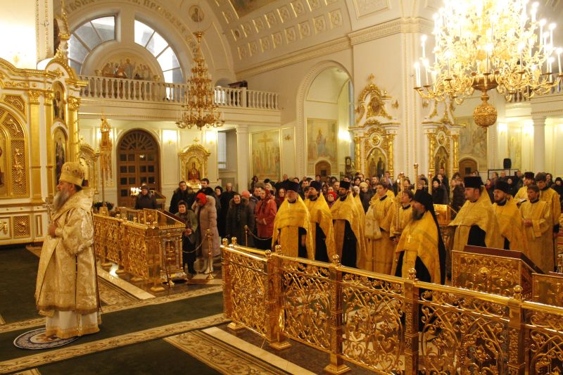 Его Высокопреосвященству сослужили: секретарь Саранской епархии протоиерей Виктор Хохлов; ключарь кафедрального собора игумен Фома (Василенко) и духовенство собора.