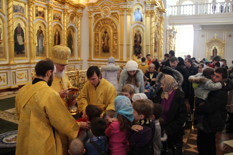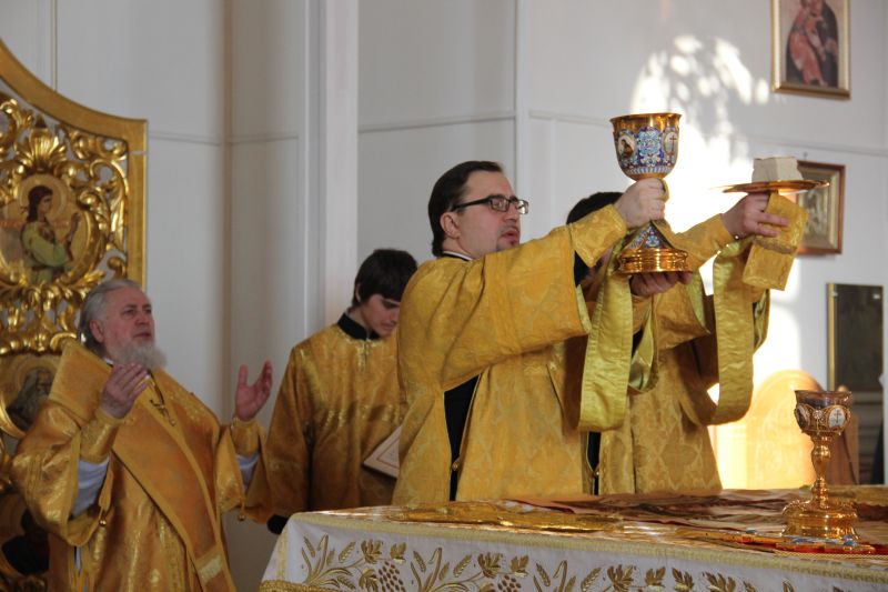 По запричастном стихе проповедь произнес директор детской Воскресной школы при кафедральном соборе протоиерей Павел Горбунов.