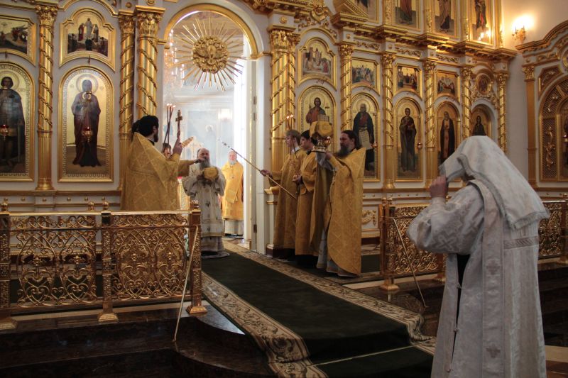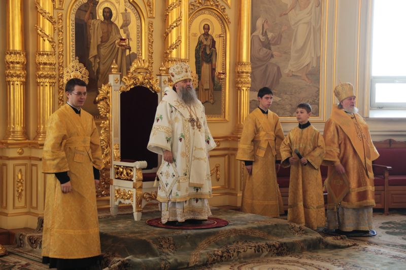 Его Высокопреосвященству сослужили: Преосвященнейший Илия, епископ Рузаевский, викарий Саранской епархии; секретарь Саранской епархии протоиерей Виктор Хохлов; ключарь кафедрального собора игумен Фома (Василенко) и духовенство собора.