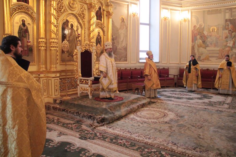 Его Высокопреосвященству сослужили: Преосвященнейший Илия, епископ Рузаевский, викарий Саранской епархии; секретарь Саранской епархии протоиерей Виктор Хохлов; пресс-секретарь Саранской епархии игумен Силуан (Туманов); заместитель председателя Миссионерского отдела Саранской епархии иерей Василий Матвеев и духовенство собора.