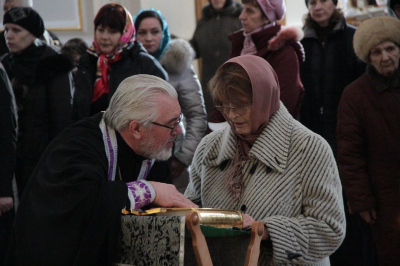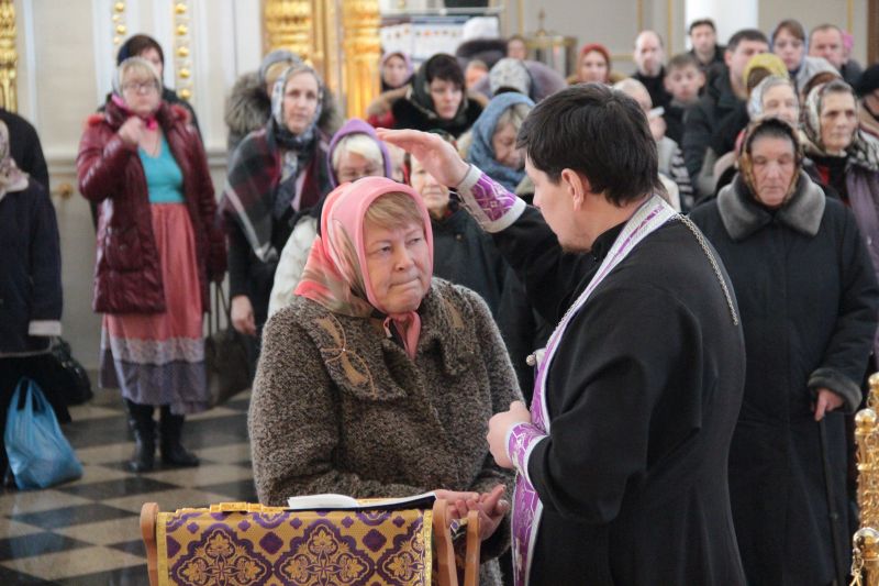 Во время богослужения Высокопреосвященнейший владыка помазал верующих освященным елеем.