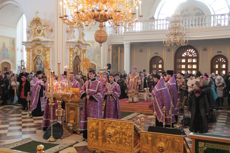 Вечером 22 марта, в канун субботы 1-й седмицы Великого поста, Высокопреосвященнейший Варсонофий, митрополит Саранский и Мордовский, управляющий делами Московской Патриархии совершил Великое повечерие и полиелейную утреню в Свято-Феодоровском кафедральном соборе города Саранска. В субботу 1-й седмицы Великого поста совершается переходящее празднование памяти вмч. Феодора Тирона. Согласно уставу с пятницы на этот день переносится также празднование памяти 40 мучеников Севастийских (см. Типикон, 9 марта, 1-я Маркова глава; ср. Типикон, 24 февраля, 8-я Маркова глава, 31-я и 32-я Храмовые главы; Минея, 9 марта, 2-я Маркова глава).