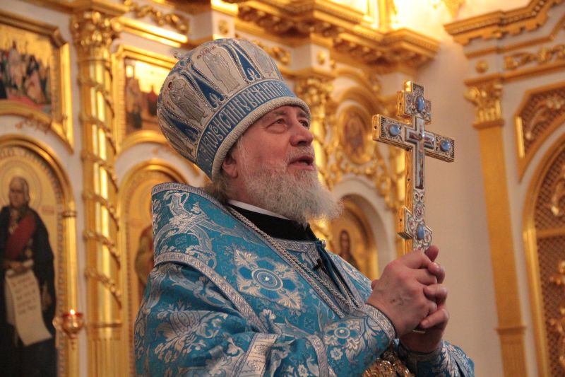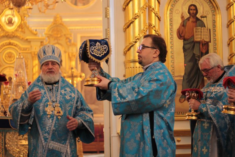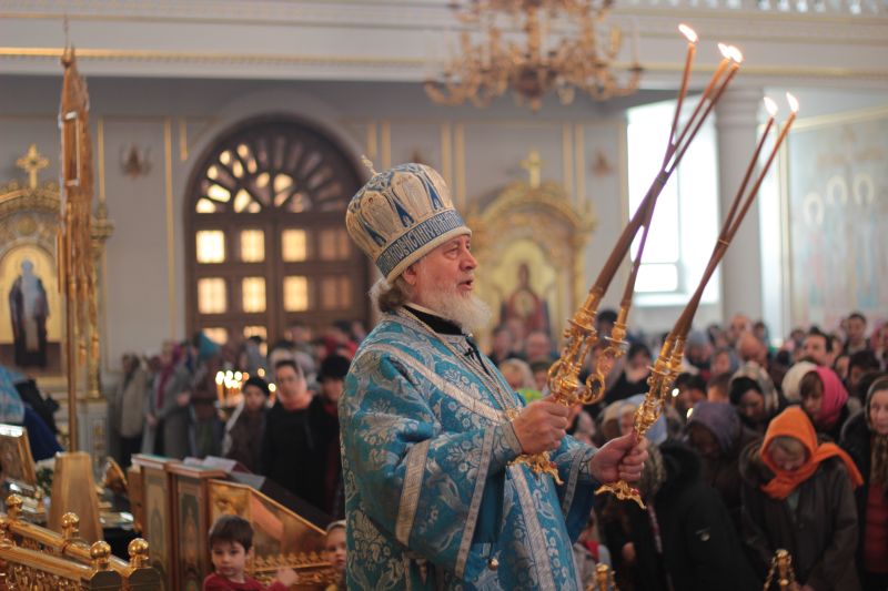 Его Преосвященству сослужили: пресс-секретарь Саранской епархии игумен Силуан (Туманов) и соборное духовенство.