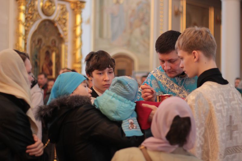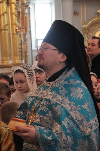 По запричастном стихе проповедь произнес пресс-секретарь Саранской епархии игумен Силуан (Туманов).