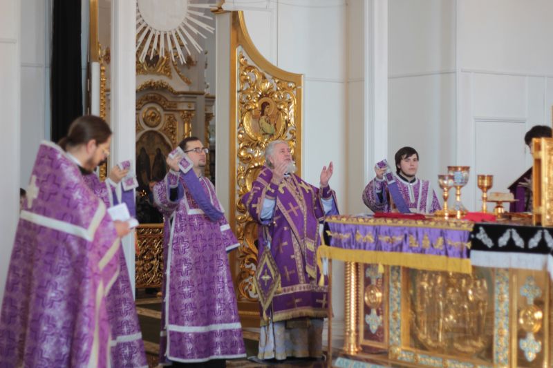 Его Преосвященству сослужили: секретарь Саранской епархии протоиерей Виктор Хохлов; ключарь кафедрального собора игумен Фома (Василенко); директор детской Воскресной школы при кафедральном соборе протоиерей Павел Горбунов; заместитель председателя Миссионерского отдела Саранской епархии иерей Василий Матвеев и духовенство собора.
