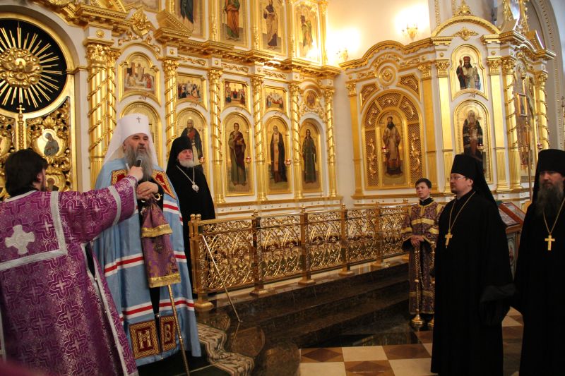 Его Высокопреосвященству сослужили: Преосвященнейший Илия, епископ Рузаевский, викарий Саранской епархии; секретарь Саранской епархии протоиерей Виктор Хохлов; пресс-секретарь Саранской епархии игумен Силуан (Туманов); ключарь кафедрального собора игумен Фома (Василенко); директор детской Воскресной школы при кафедральном соборе протоиерей Павел Горбунов; заместитель Председателя Миссионерского отдела Саранской епархии иерей Василий Матвеев и соборное духовенство.