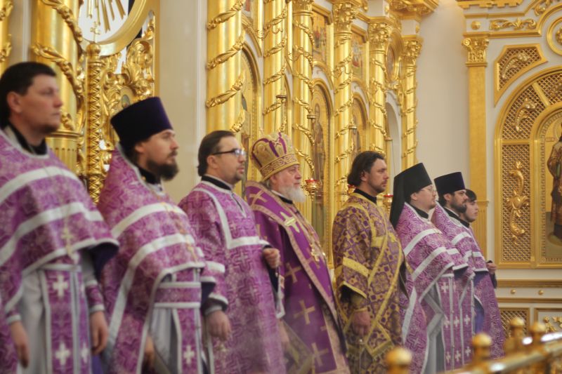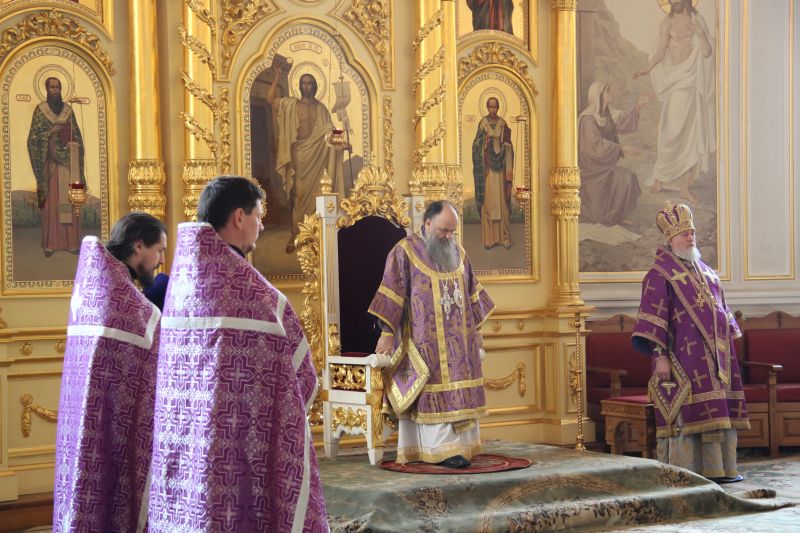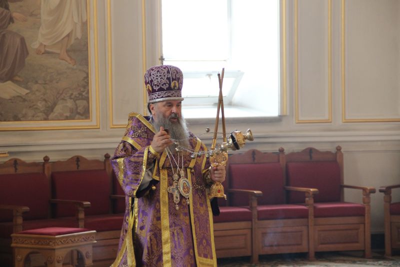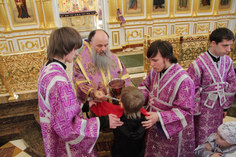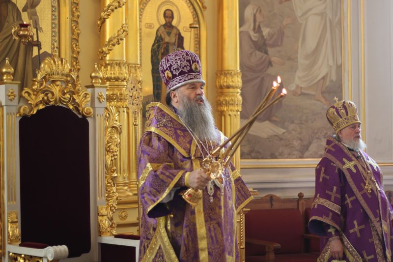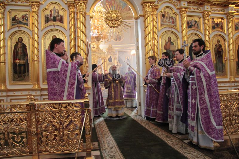 По окончании богослужения Высокопреосвященнейший владыка Варсонофий обратился к собравшимся с архипастырским словом на тему евангельского чтения дня. "Не стоит, будучи христианами, мечтать о наградах и особенном положении в Церкви. Как мы слышали сегодня, Господь этого нам не обещает, только испить Чашу и креститься крещением Господним. То есть все необходимое и полезное Бог дает нам через Таинства. Молить Бога о наградах, благополучии, успехе даже здоровье может быть неспасительно для нас. Вот, посмотрите, апостол Павел мог, конечно, вылечить своего ученика от телесной немощи, но не стал этого делать, лишь ослабил ему пост, полагая, что он так будет ближе к Богу и через страдания болезни очистится от страстей... В предпасхальные дни многие священники, подобно упоминаемым в сегодняшнем Евангелии апостолам, мечтают о наградах за свое служение, должностях и званиях. Но у служителя Христова одна награда - служить Богу и стремиться к Нему" - в частности отметил Владыка.