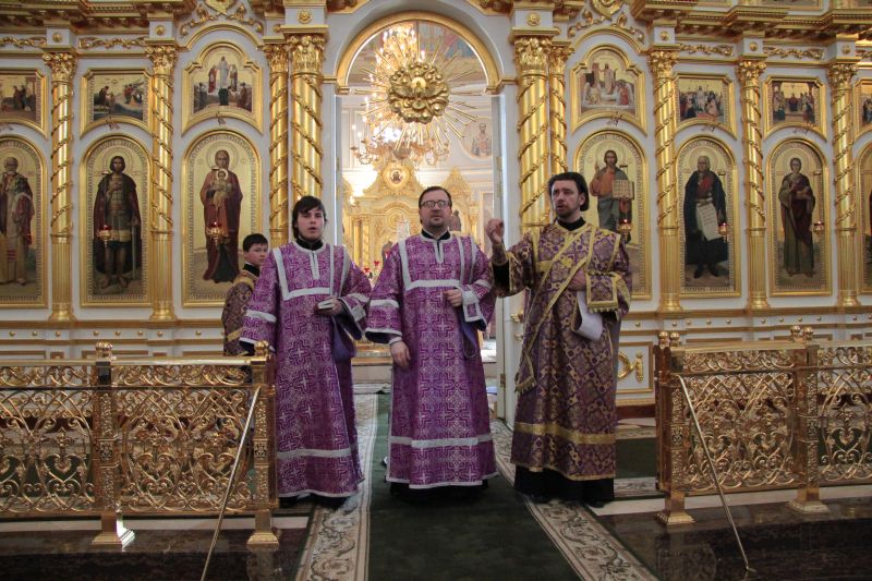 По запричастном стихе проповедь произнес пресс-секретарь Саранской епархии игумен Силуан (Туманов).