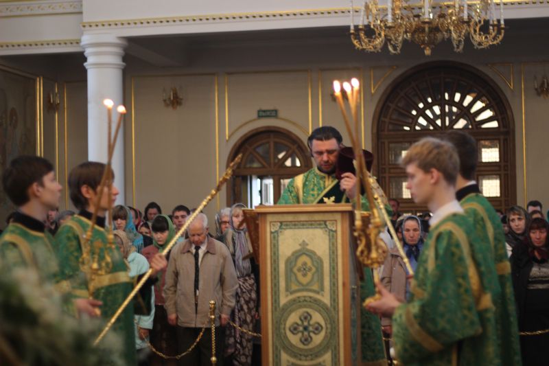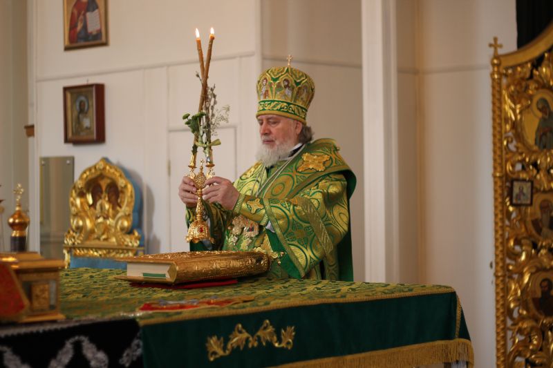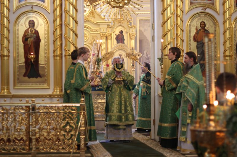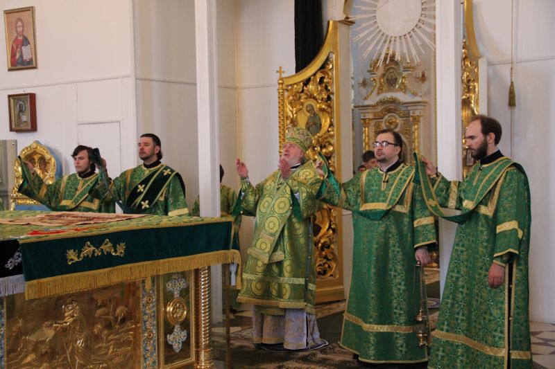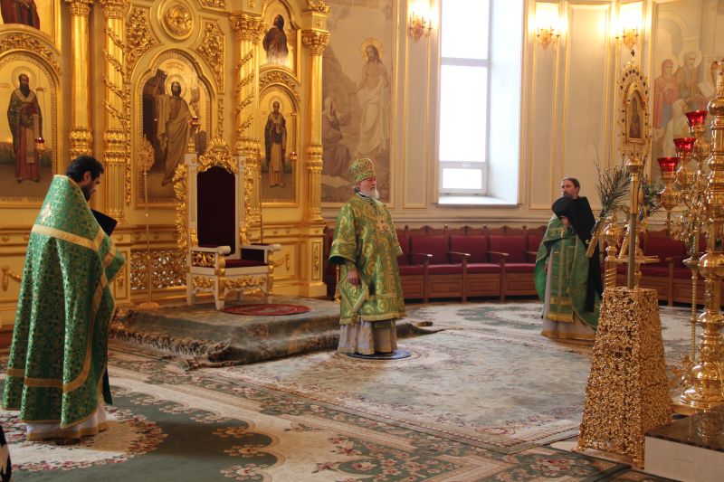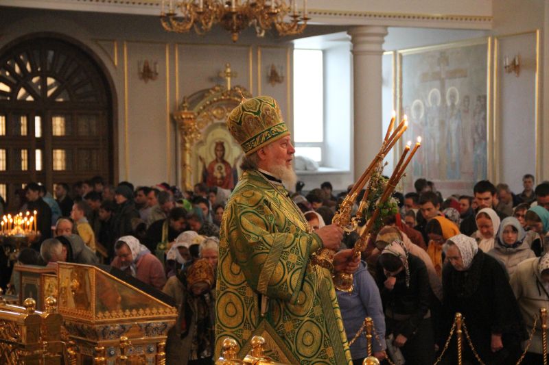 Его Преосвященству сослужили: секретарь Саранской епархии протоиерей Виктор Хохлов; ключарь кафедрального собора игумен Фома (Василенко) и соборное духовенство.