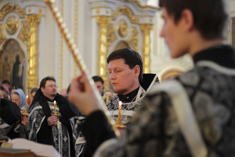 Его Высокопреосвященству сослужили: Преосвященнейший Илия, епископ Рузаевский, викарий Саранской епархии; секретарь Саранской епархии протоиерей Виктор Хохлов; пресс-секретарь Саранской епархии игумен Силуан (Туманов); ключарь кафедрального собора игумен Фома (Василенко); директор детской Воскресной школы при соборе протоиерей Павел Горбунов и духовенство собора.