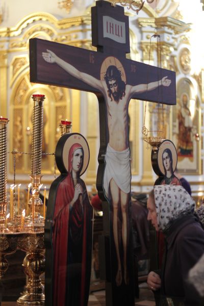 «Ваше Преосвященство, дорогие отцы, братья и сестры, поздравляю всех вас с Великой Пятницей. Завершилась служба утрени Великой Пятницы, особая трогательная служба, в которой нам четыре евангелиста поведали о последних дня, о последних часах и минутах жизни нашего Спасителя. Мы видели как по разному поступали в этой ситуации люди. И вера в присутствие Господа не гарантировала многим сохранение верности Богу. И даже не только верности – ведь Христа распяли не атеисты, а глубоко верующие люди: первосвященники, фарисеи и народ, который кричал Пилату: «Распни, распни Его!».