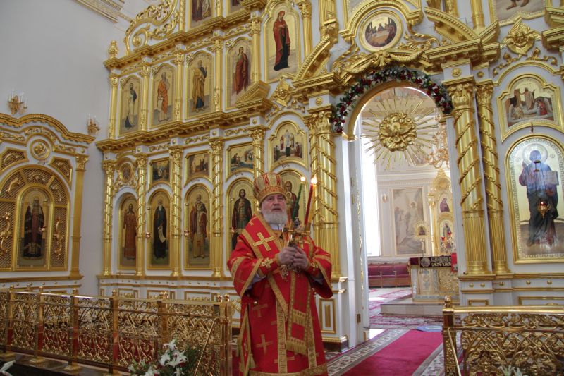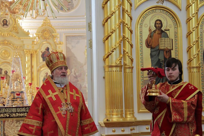 Его Преосвященству сослужили: протоиерей Виктор Сардаев и духовенство собора.