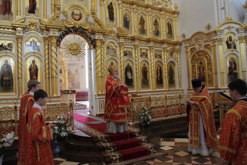 9 мая, в четверг Светлой седмицы Преосвященнейший Илия, епископ Рузаевский, викарий Саранской епархии совершил Божественную литургию в Свято-Феодоровском кафедральном соборе города Саранска.