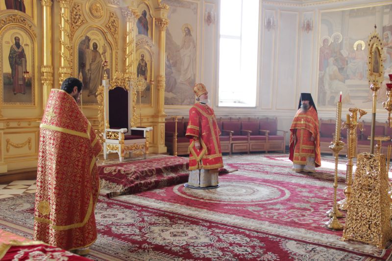 Его Преосвященству сослужили: секретарь Саранской епархии протоиерей Виктор Хохлов; ключарь кафедрального собора игумен Фома (Василенко) и духовенство собора.
