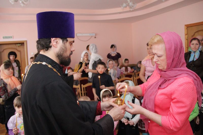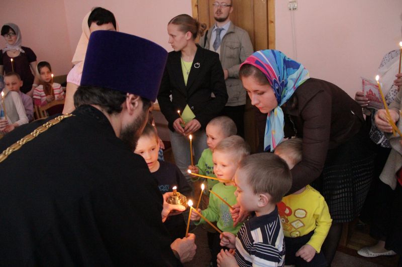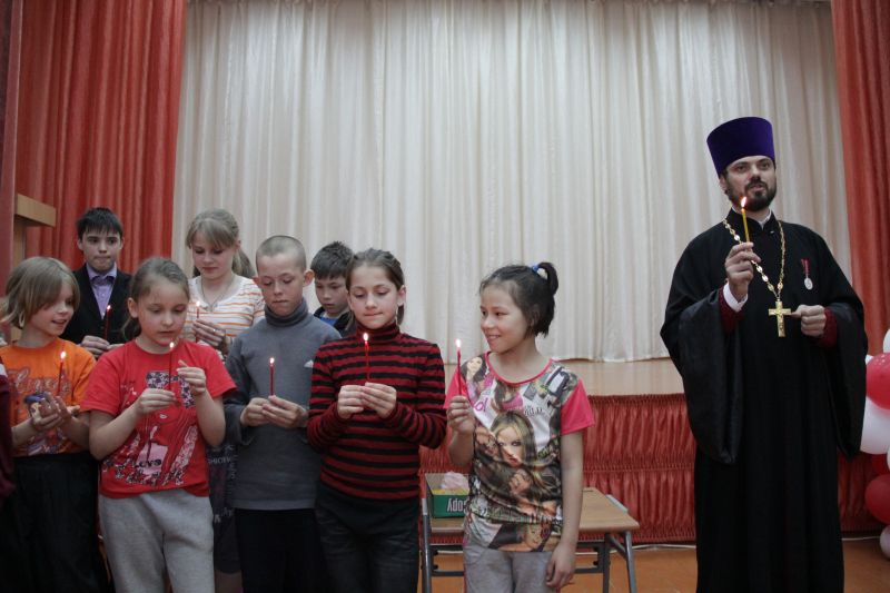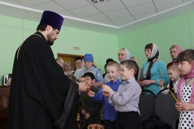 Чудесный Огонь привезли и в социально-реабилитационный центр для несовершеннолетних «Радуга». Совершенно серьезно его воспитанники - и малыши, и подростки – слушали рассказ священника о том, как происходит схождение Благодатного Огня в Иерусалиме, о том, что первые секунды этот Огонь даже не обжигает людей.