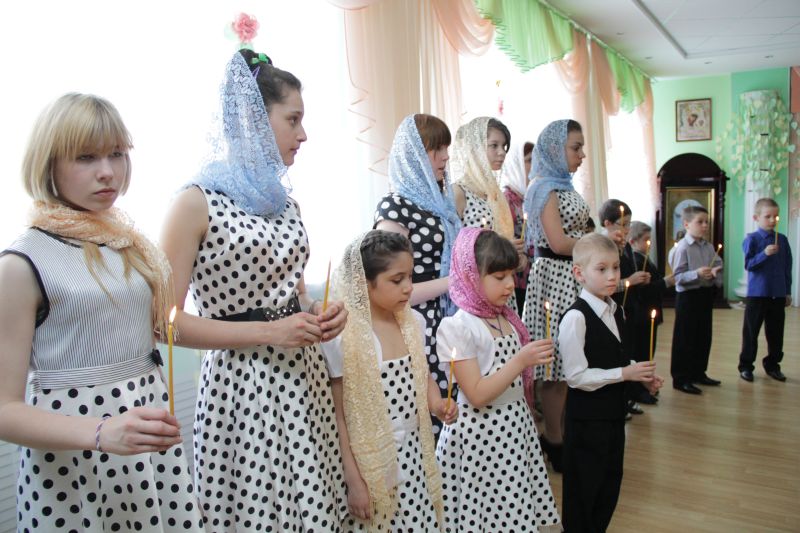 В Ялгинском детском доме-школе на встречу с Благодатным Огнем собрался целый зал. Здесь воспитанники школы подготовили небольшой духовный концерт – вместе со священниками ребята исполнили пасхальные песнопения.