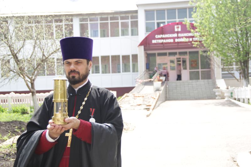 Как известно, ежегодно в канун светлого праздника православной Пасхи, в Великую Субботу, в иерусалимском храме Гроба Господня происходит самое настоящее чудо: снисходит Благодатный Огонь. Он воспламеняет фитили заранее приготовленных лампад и свечей, от которых зажигают свои свечи все собравшиеся в храме. Специальным авиарейсом, при поддержке Фонда Святого Всехвального апостола Андрея Первозванного, Благодатный Огонь доставляется в Москву, а из нее, на автомобиле, уже в день Пасхи его привозят в Саранск, в Кафедральный собор святого праведного воина Феодора Ушакова. А уже в первый день Пасхальной недели священниками Саранской епархии Благодатный Огонь был доставлен в социальные учреждения Саранска.