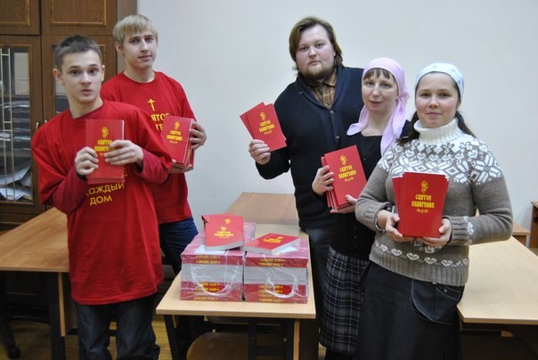 22 декабря 2013 года участники Молодежного клуба Кафедрального собора святого праведного воина Феодора Ушакова города Саранка в рамках благотворительной акции "СВЯТОЕ ЕВАНГЕЛИЕ В КАЖДЫЙ ДОМ” совместно с Православным издательством «Сибирская Благозвонница» передали 50 экземпляров Святого Евангелия Председателю Миссионерского отдела Саранской епархии протоиерею Виктору Хохлову, а также 100 экземпляров катехизатору Кафедрального собора Борониной Ксении Юрьевне.