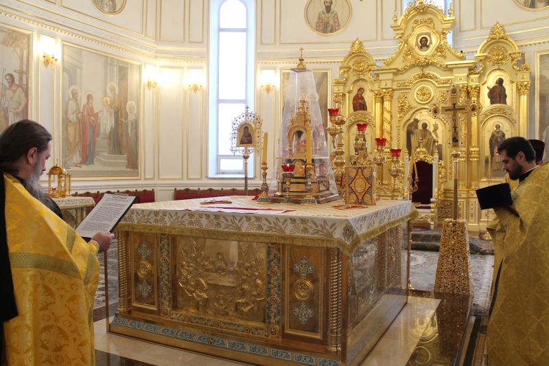 По благословению Высокопреосвященнейшего Варсонофия, митрополита Саранского и Мордовского в Свято-Феодоровском кафедральном соборе города Саранска Божественную литургию совершил ключарь собора игумен Фома (Василенко) в сослужении секретаря епархии протоиерея Виктора Хохлова.