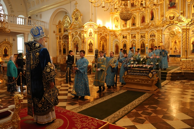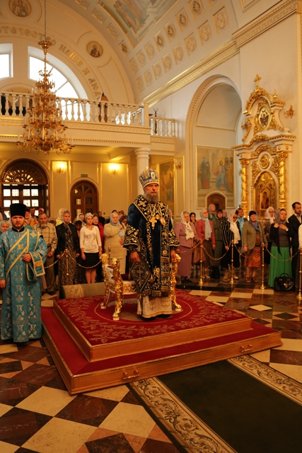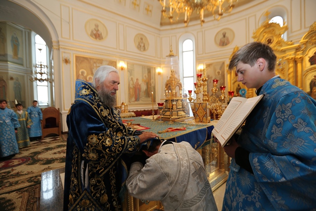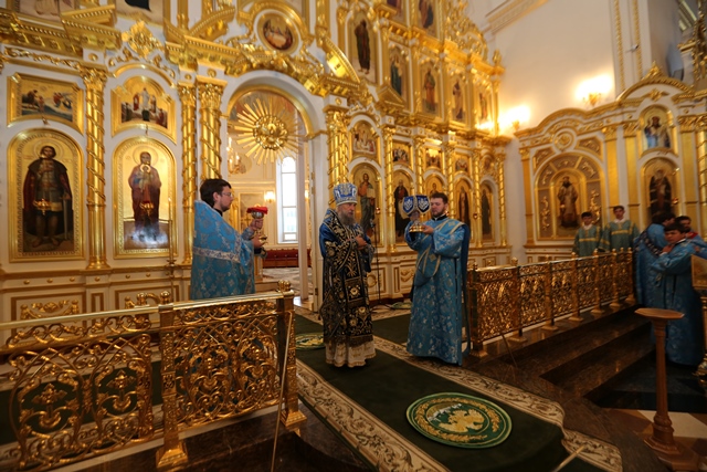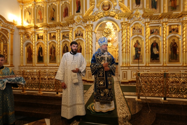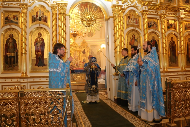 Его Высокопреосвященству сослужили секретарь Саранской епархии протоиерей Виктор Хохлов и духовенство собора.