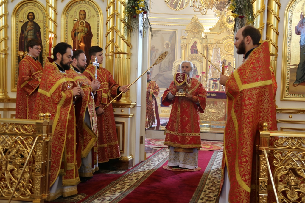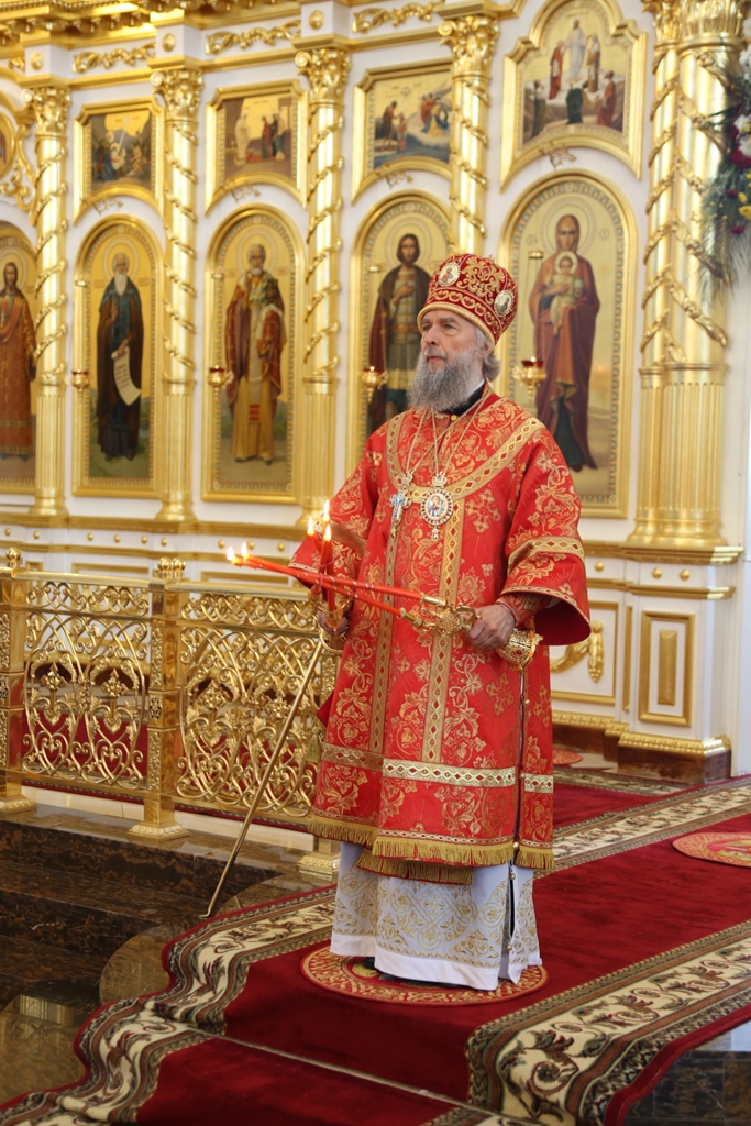 Его Высокопреосвященству сослужили секретарь Саранской епархии протоиерей Виктор Хохлов, клирики собора.