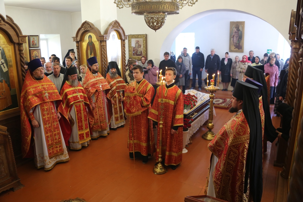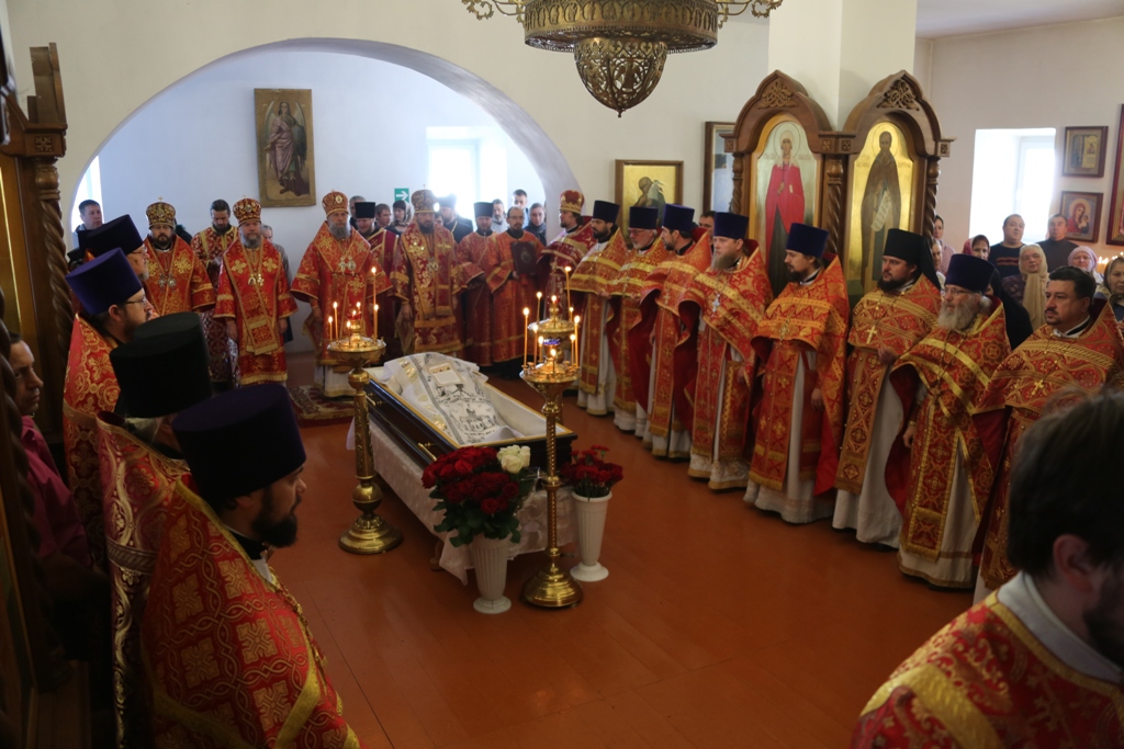 В Михаило-Архангельском храме Макаровской обители Высокопреосвященнейший Зиновий, митрополит Саранский и Мордовский, возглавил Божественную литургию и чин отпевания. Его Высокопреосвященству сослужили преосвященные Лазарь, епископ Нарвский и Причудский, Климент, епископ Краснослободский и Темниковский, Вениамин, епископ Ардатовский и Атяшевский, благочинные Саранской епархии, настоятели монастырей, братия Иоанно-Богословского Макаровской обители и другие клирики.
