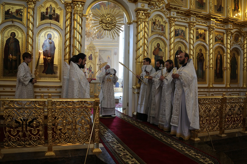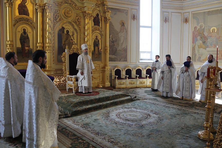 Его Высокопреосвященству сослужили секретарь Саранской епархии протоиерей Виктор Хохлов, руководитель епархиальной богослужебной комиссии иерей Максим Адамов, клирики собора.