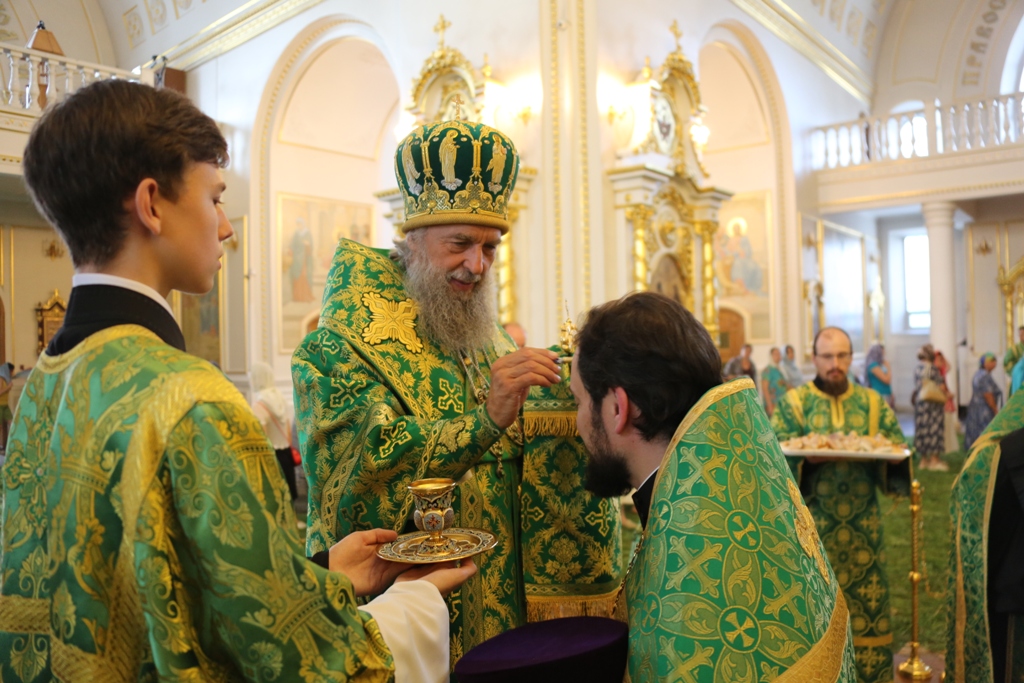 18 июня, в канун Дня Святой Троицы, Высокопреосвященнейший Зиновий, митрополит Саранский и Мордовский, совершил Всенощное бдение в Свято-Феодоровском кафедральном соборе.