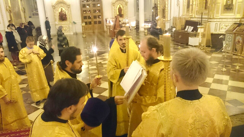 Вечером 29 октября 2016 года в Свято-Феодоровском кафедральном соборе было совершено Всенощное Бдение перед Воскресным днём. Богослужение возглавил ключарь собора, протоиерей Виктор Хохлов. Ему сослужили клирики собора.