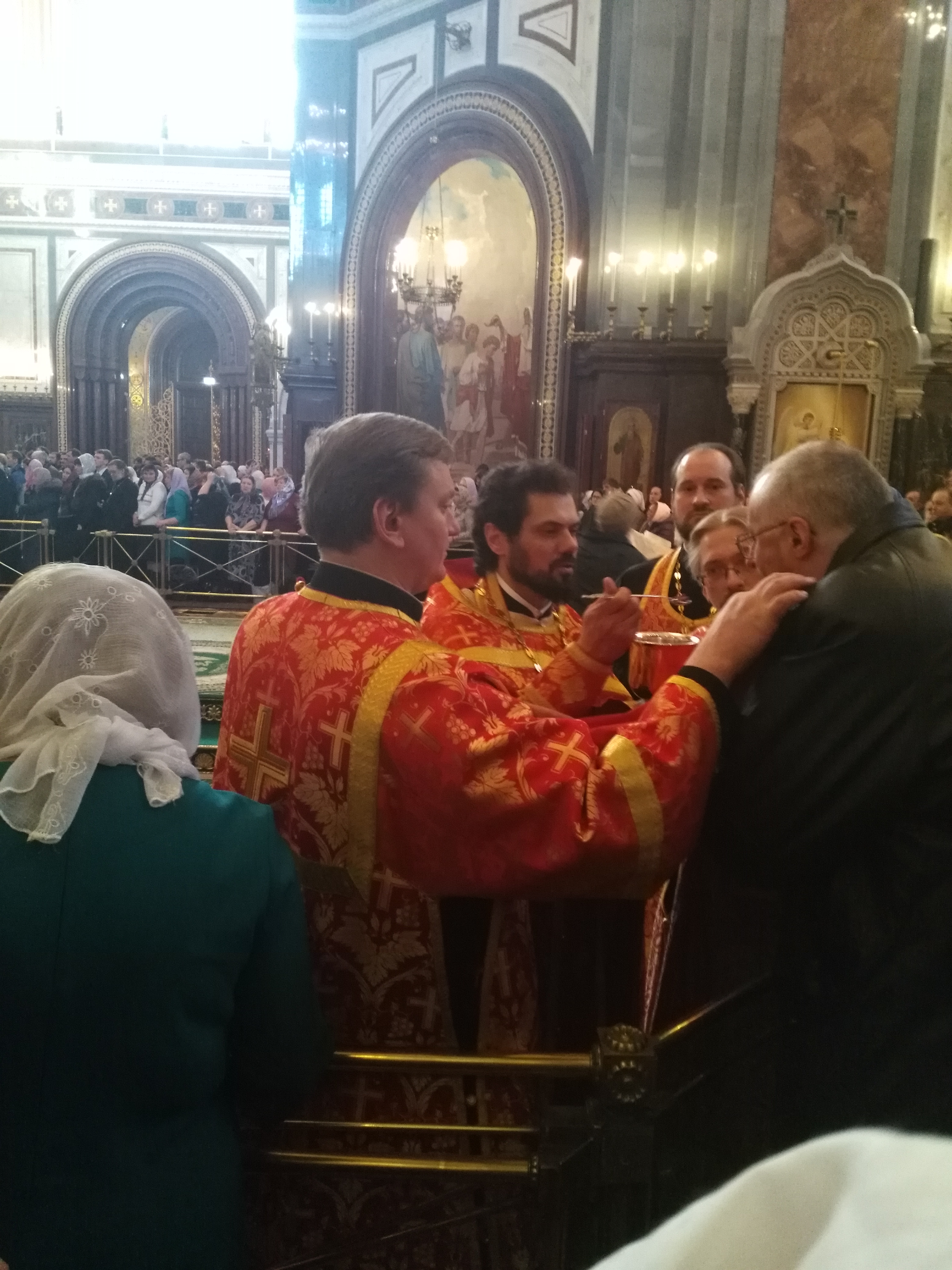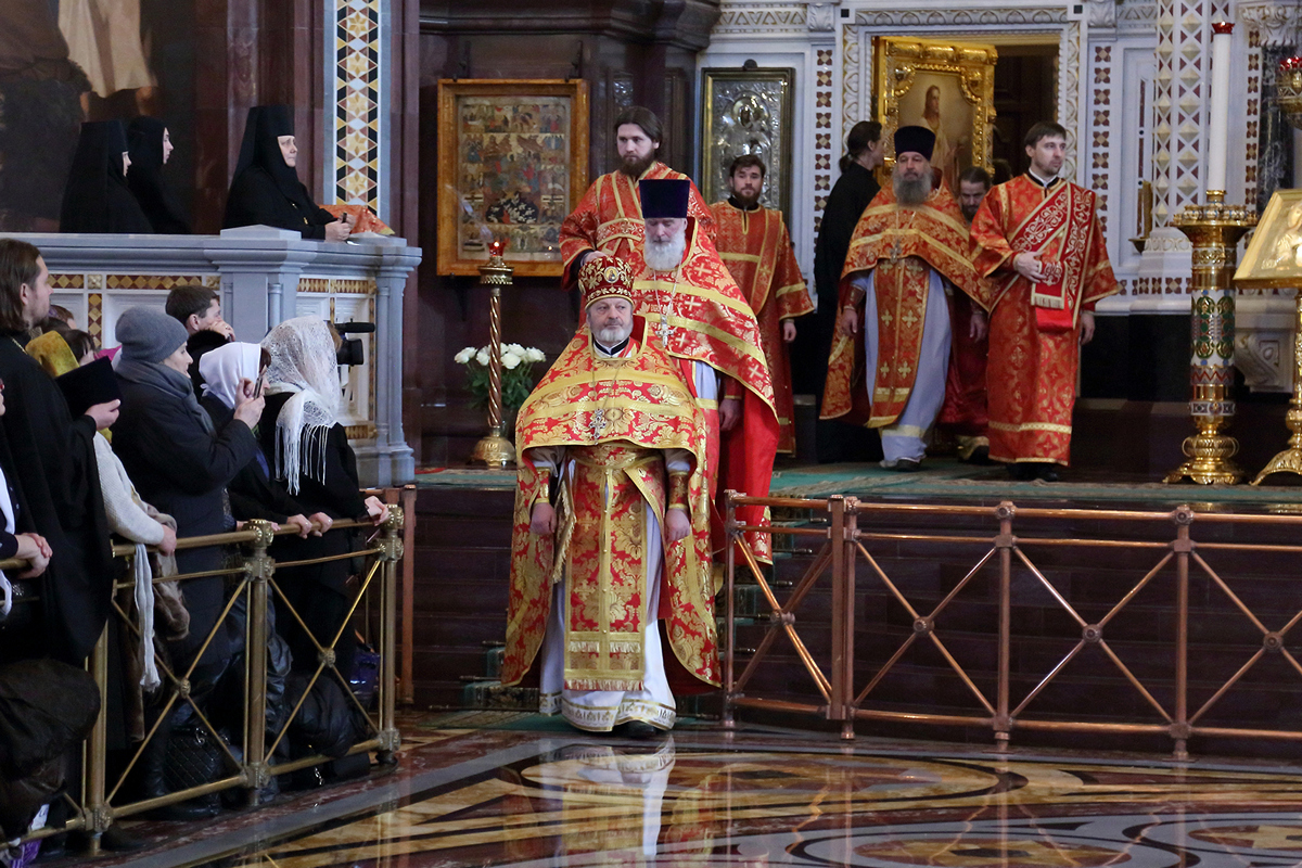 Владыкам сослужили клирики, прибывшие в столицу для участия в Рождественских чтениях, в том числе секретарь Саранской епархии протоиерей Виктор Хохлов и наместник Иоанно-Богословского Макаровского мужского монастыря игумен Мелетий (Кисняшкин).