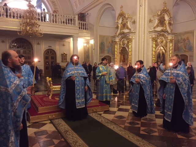 4 ноября клирики Собора совершили Божественную Литургию. Богослужение возглавил Митрополит Саранский и Мордовский Зиновий. Ему сослужили архиереи соседних епархий владыка Климент и владыка Вениамин.