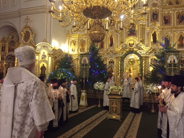 В выпуске Воскресное богослужение, Рождественское Всенощное Бдение с Литией и Литургия, Собор Пресвятой Богородицы, память св. первомученика и архидиакона Стефана.