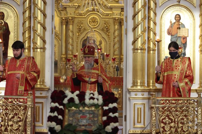 Ему сослужили протоиерей Сергий Калаганов, секретарь богослужебной комиссии иерей Максим Адамов, иерей Евгений Скаковский, иеромонах Феофан (Пожидаев), иерей Михаил Бычков.