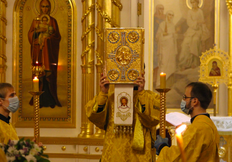 Ему сослужили иерей Евгений Скаковский, иерей Михаил Бычков, диаконы Василий Чирков, Дионисий Гдешинский и Александр Плодухин. Богослужебные песнопения исполнил хор под управлением регента Наталии Летенко. За богослужением было прочитано Евангелие от Луки.